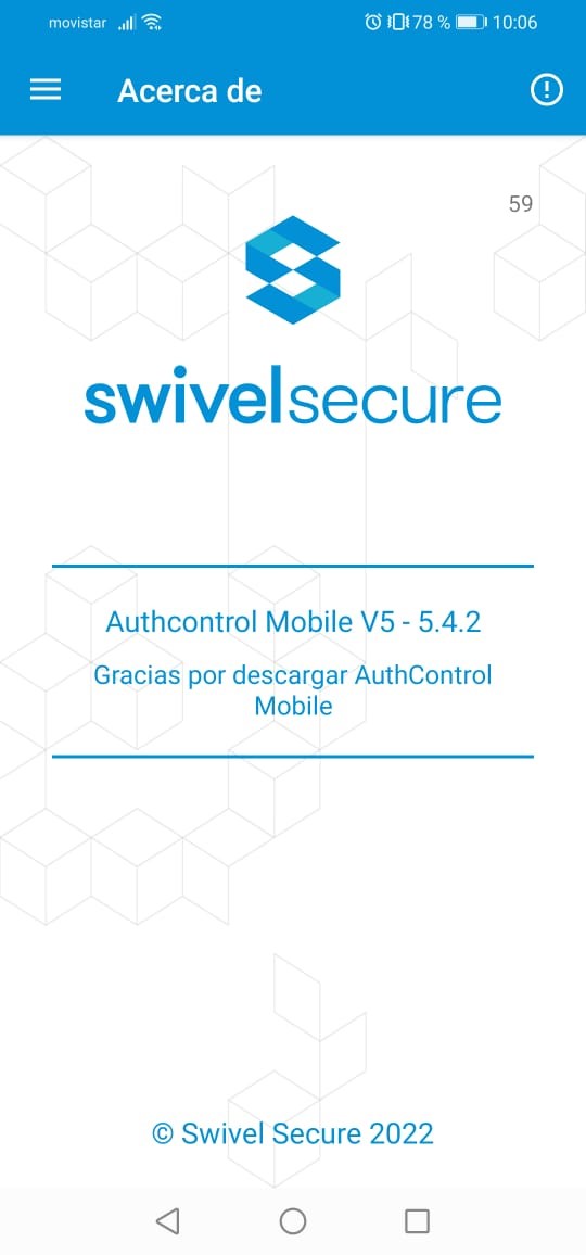 Step 1: Verify that the AuthControl Mobile V5 app is updated on the device to version 5.4.2, otherwise you will need to run the app update. (Go to the info page of the application and verify that the information it shows you is the one indicated in the figure 1).