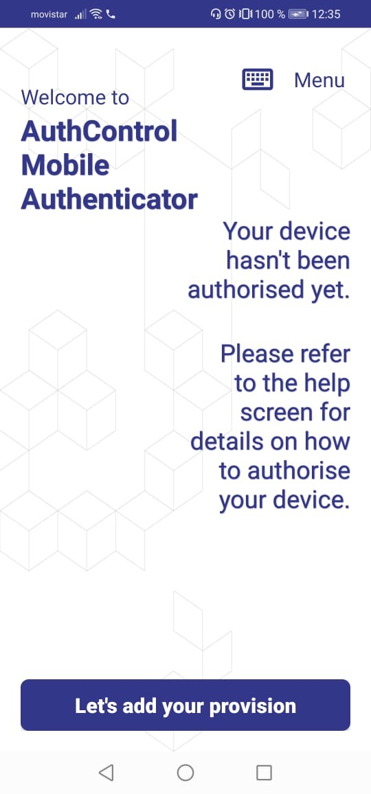 Step 3: Launch the AuthControl Mobile Authenticator (AMA) app, once on the home page of the app, click on the Menu option located at the top right of the screen (see figure 4).